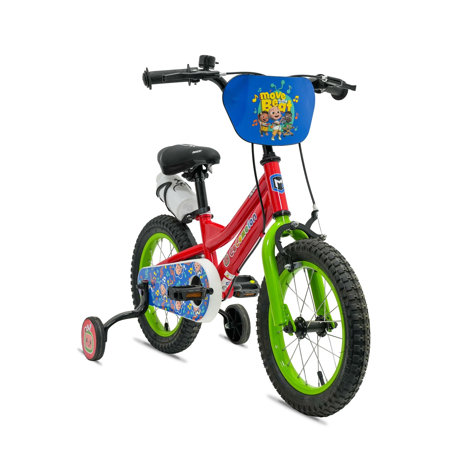 The Mogoo Cocomelon Beats Kids Bicycle is the perfect ride for young adventurers, blending fun Cocomelon-themed graphics with reliable safety features. Available in 12-inch and 14-inch sizes, this bike is designed to grow with your child. Constructed with a durable steel frame, it offers a stable and safe riding experience.