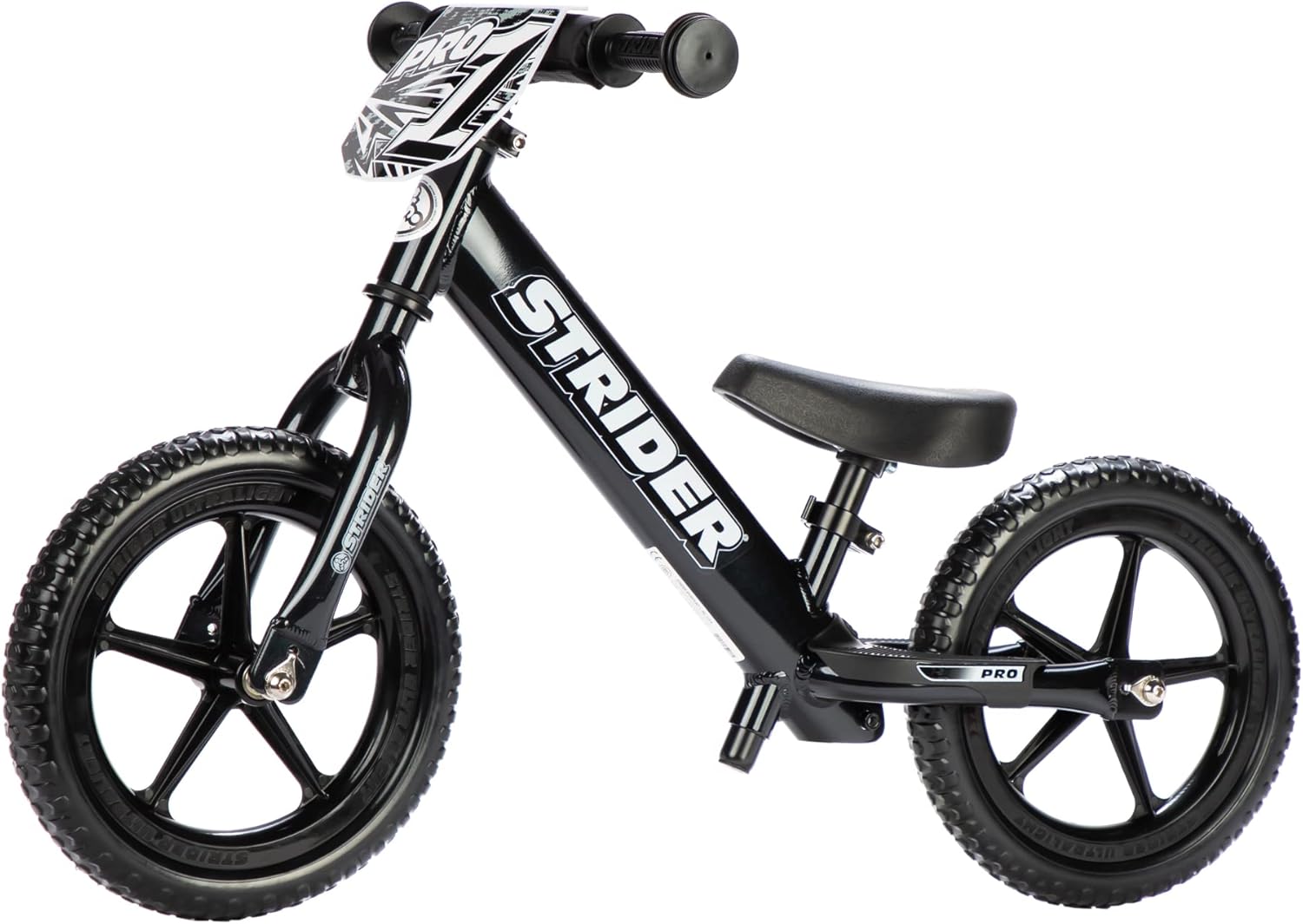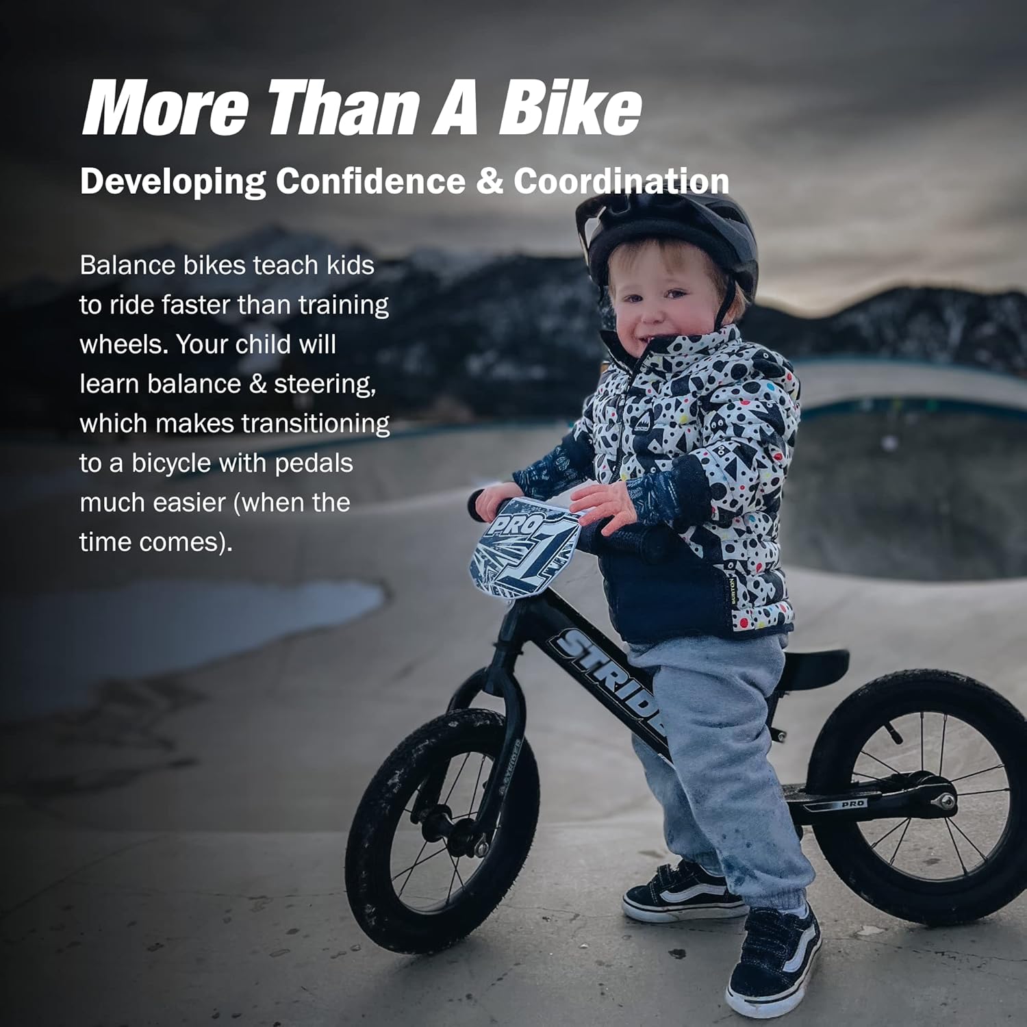 The Strider 12" Pro is the ultralight, race-ready bike for children aged 1-5 years. It features a premium All-Aluminum Frame that weighs only 2.5 kg. The bike comes with Flat-Free Foam Rubber Tires and tool-free adjustments for quick setup. Enhanced with a built-in performance footrest and official number plate, it's designed for speed and optimal control.