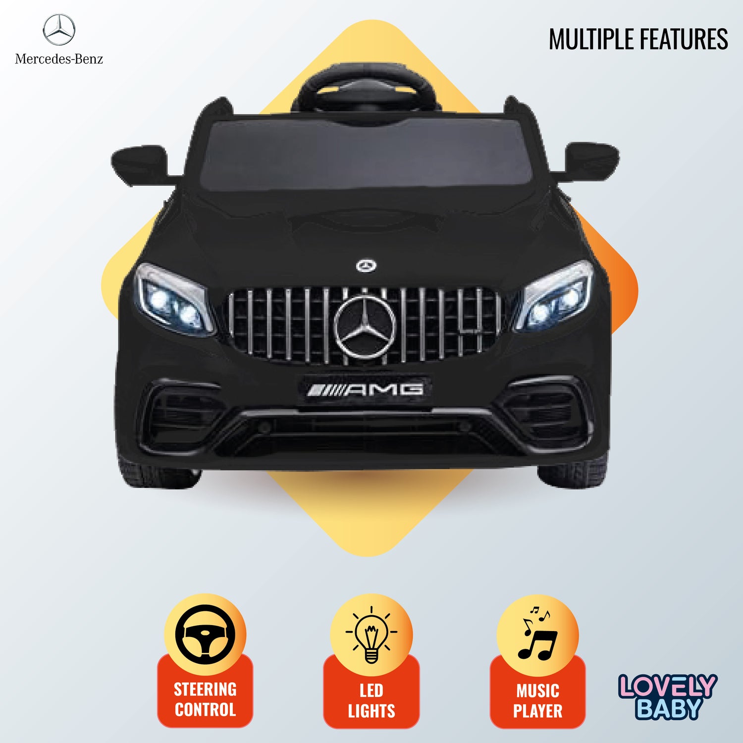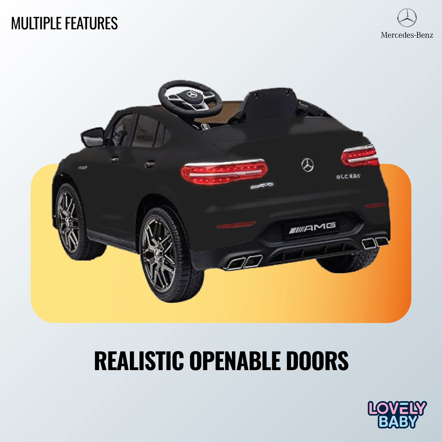 Let your little one drive in style with the Mercedes-Benz Power Riding SUV Car, ideal for ages 2-6 years! This electric ride-on features a 12V battery, four motors, remote control with speed adjustment, openable doors, LED lights, and a music player.