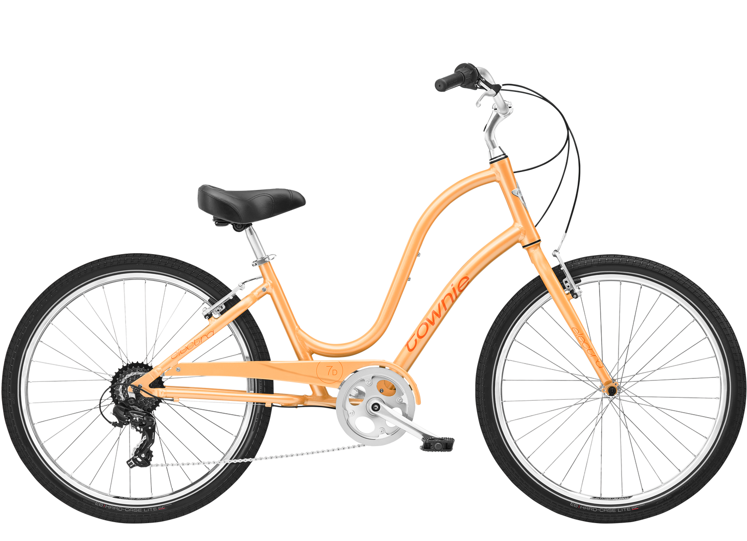 The Electra Townie Original 7D EQ Step Thru is a comfortable and dynamic urban bike. Its lightweight aluminum frame features Electra's signature Flat Foot Technology for a relaxed, upright ride. With a reliable 7-speed Shimano Tourney transmission and an "EQ" package that includes a Shimano front dynamo and full fenders, this bike is ready for any urban adventure.