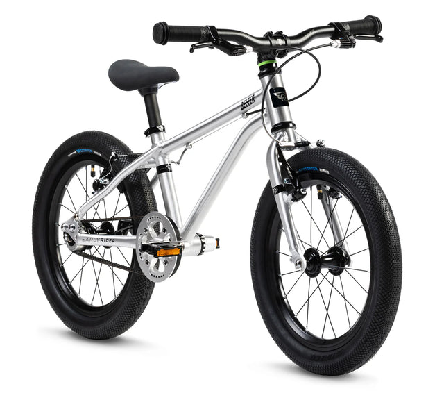 The Early Rider Belter 16" is a lightweight, all-terrain bike for young riders, weighing just 5.9kg. Its durable aluminum frame and grease-free Gates Carbon Belt drive offer a smooth, low-maintenance ride, while child-specific brakes and wide tires provide excellent control and stability on various surfaces.