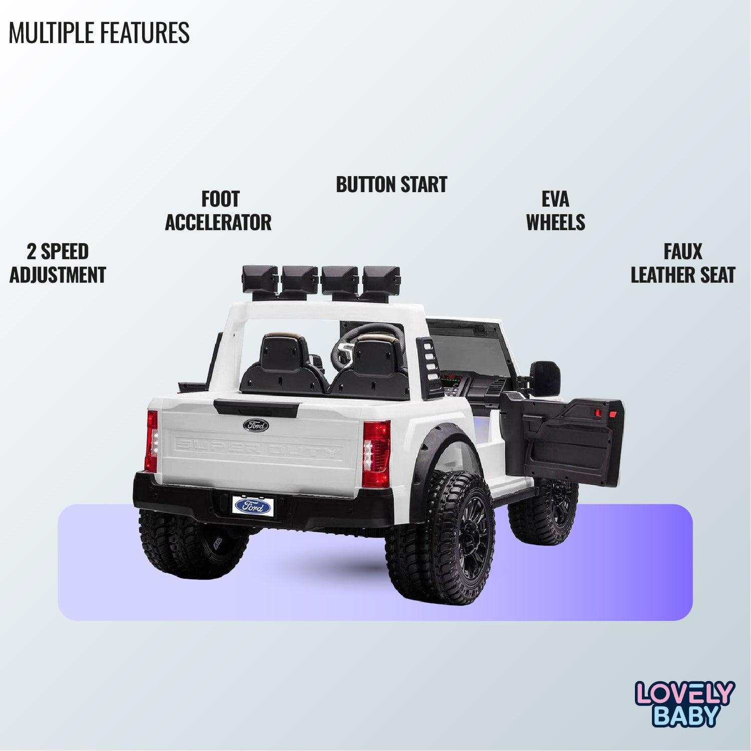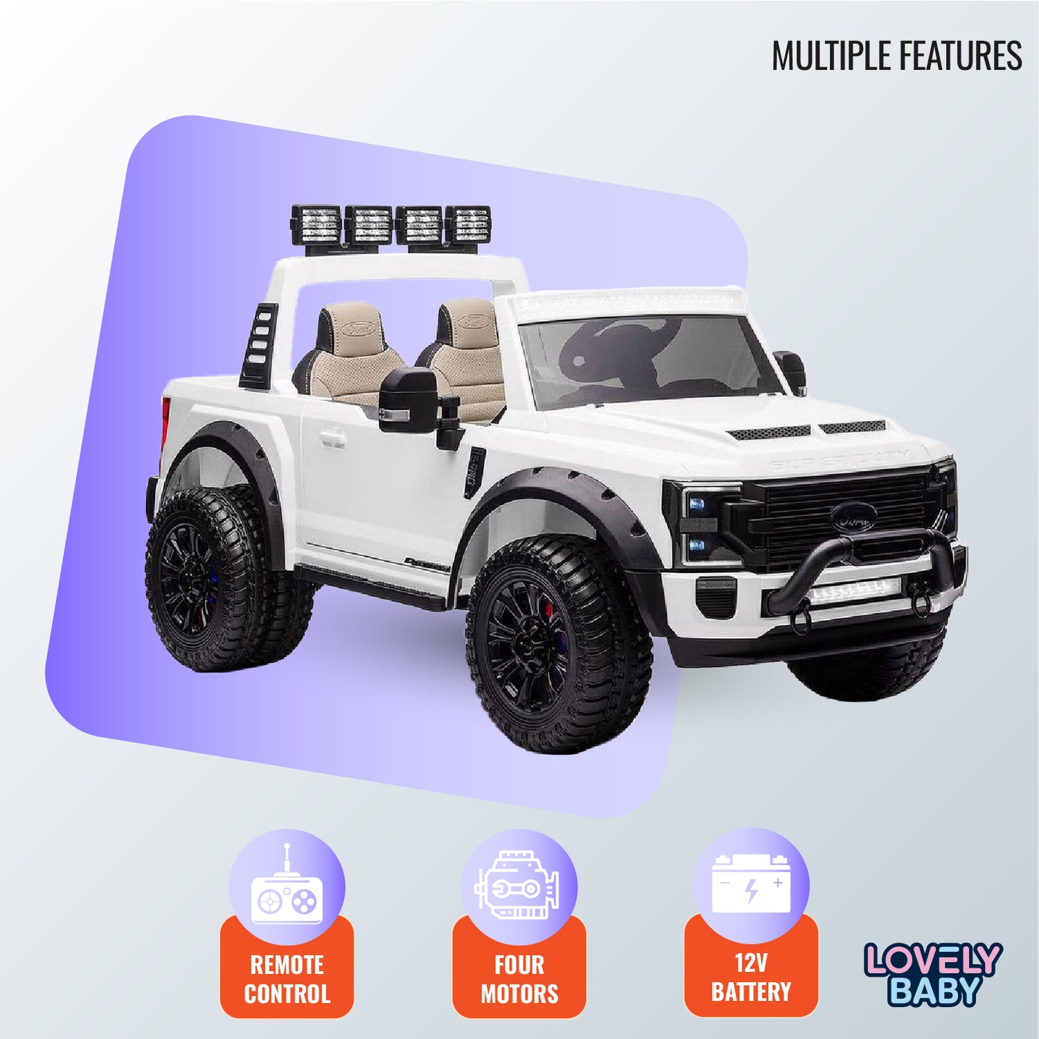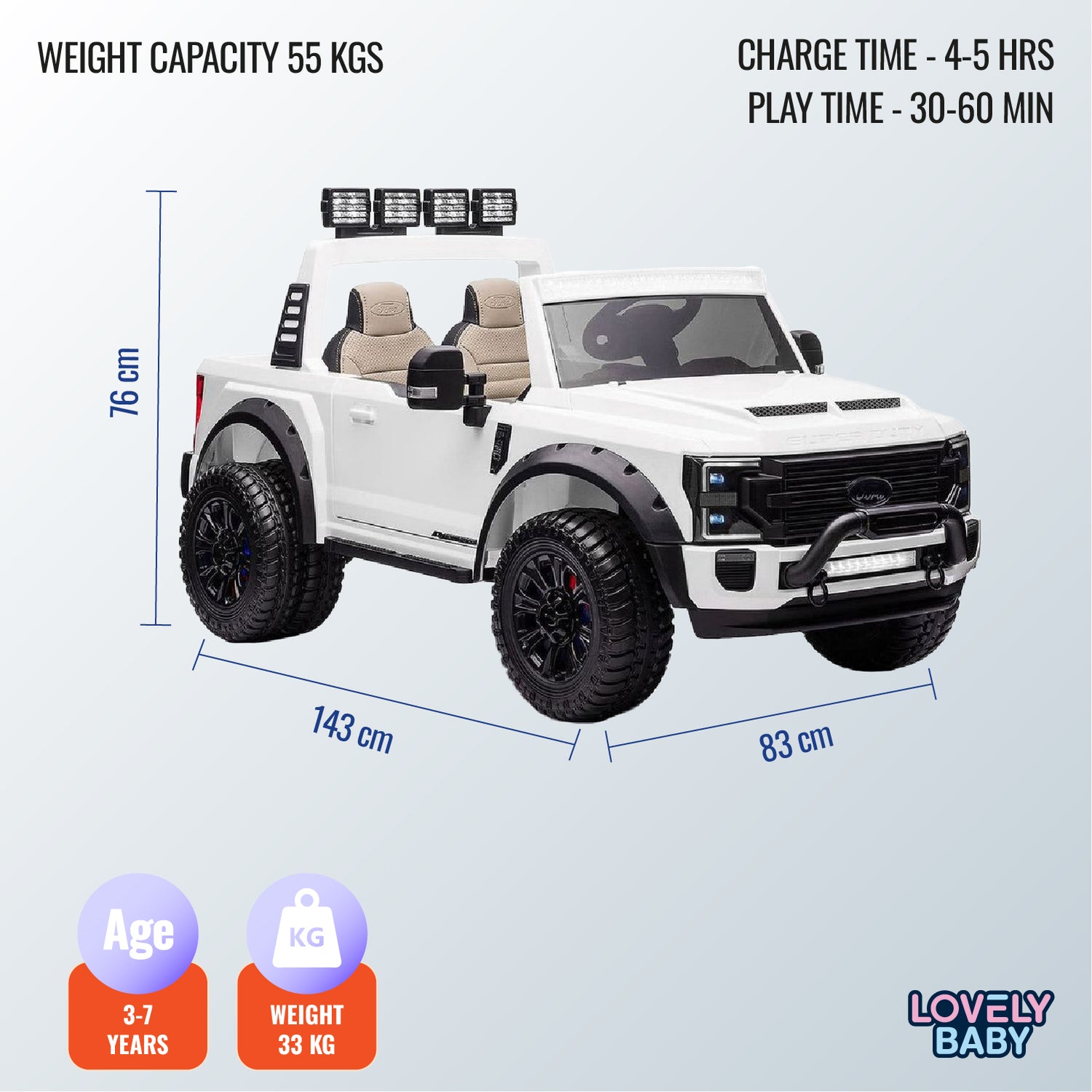 Unleash a rugged adventure for your child with the Ford Heavy Duty Electric Ride-On Jeep! Perfect for young drivers aged 3-7 years, this jeep is powered by a 12V battery and four motors for a powerful and realistic off-road experience. The vehicle is loaded with features to ensure a great ride, including EVA wheels, synthetic leather seats, a seat belt, and a remote control for parental guidance. Kids can take control with a foot accelerator and button start, while LED lights, under-car lighting, and a music player add to the fun.