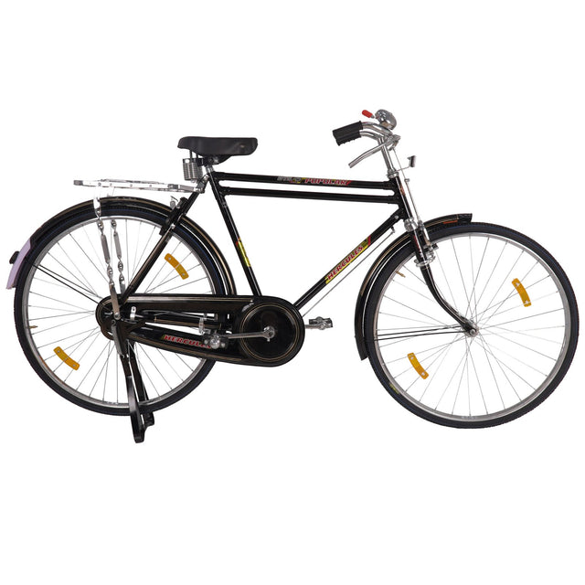The Hercules Double Bar 28" Bike is a sturdy and reliable bicycle made in India, built for daily commuting and rough use. With a strong frame, large wheels, and practical features, it offers a smooth and comfortable riding experience.