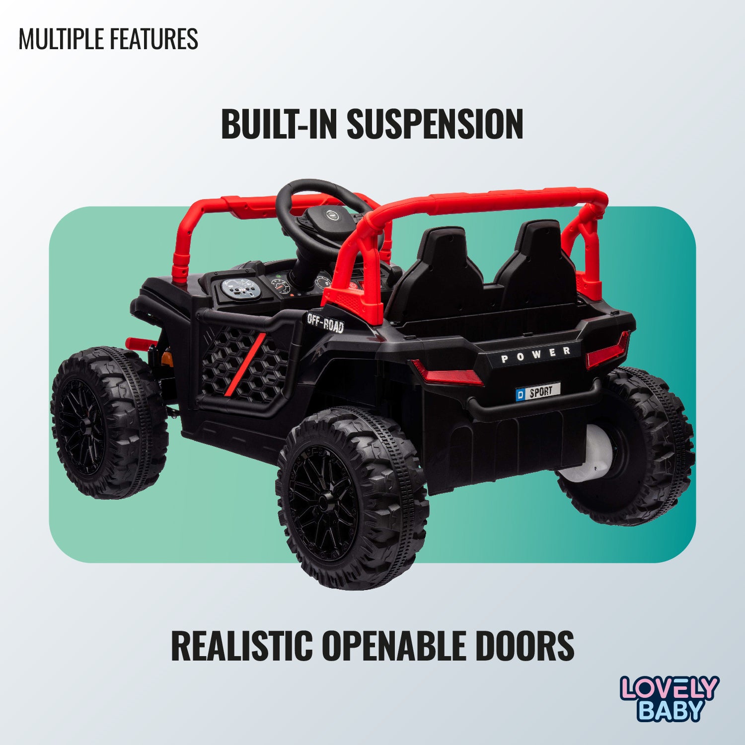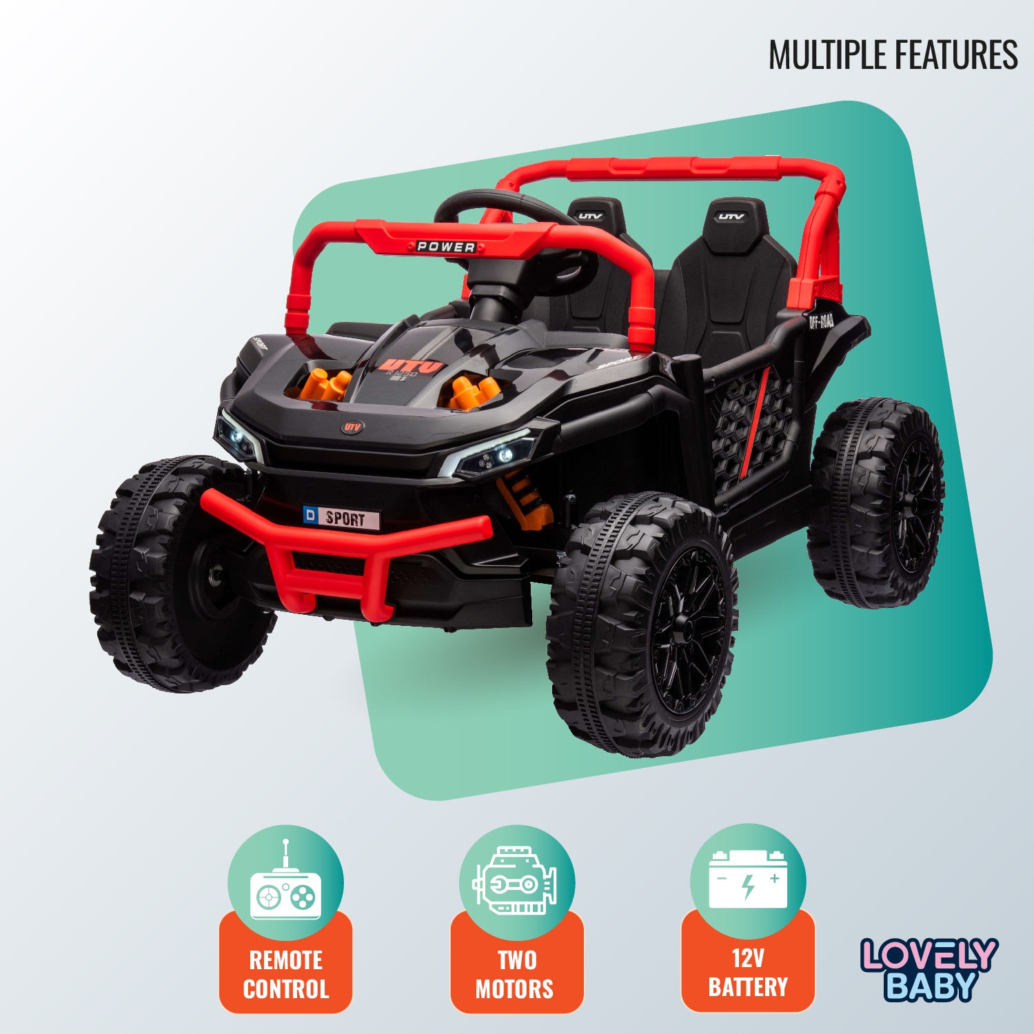 Get ready for adventure with the Lovely Baby UTV Electric Ride-On Jeep! Designed with a spacious interior for ages 1-3, this jeep boasts a 12V battery and dual motors for smooth rides. Parents ensure safety with the remote control and suspension, while kids enjoy USB-MP3 music and two-speed options.