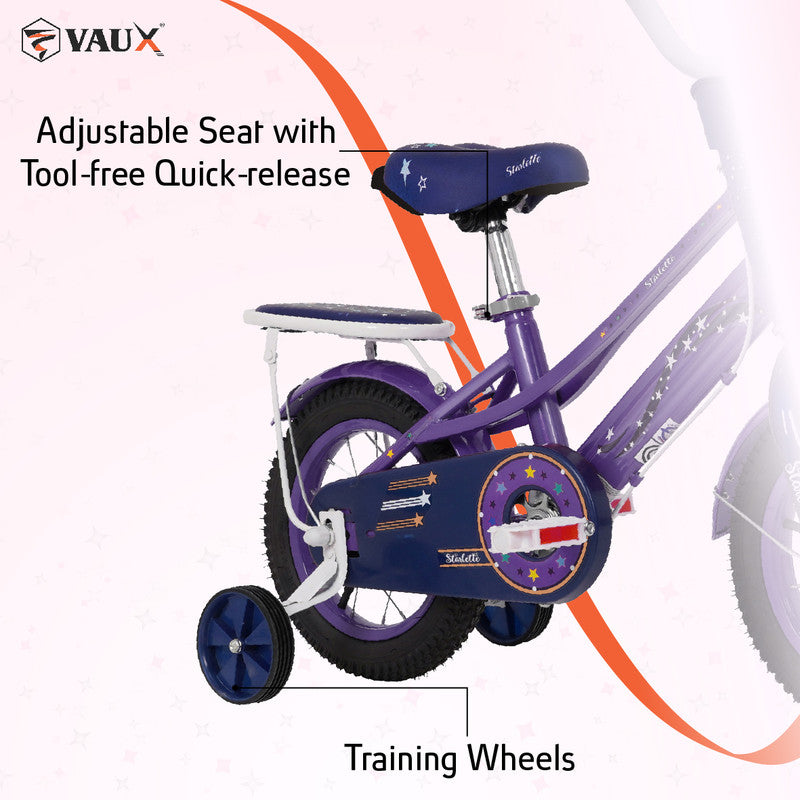 The Vaux Starlette is a durable and stylish kids' bike designed for safety, comfort, and growth. With a strong steel frame, training wheels, and an adjustable seat, it's the perfect first bike for young riders.