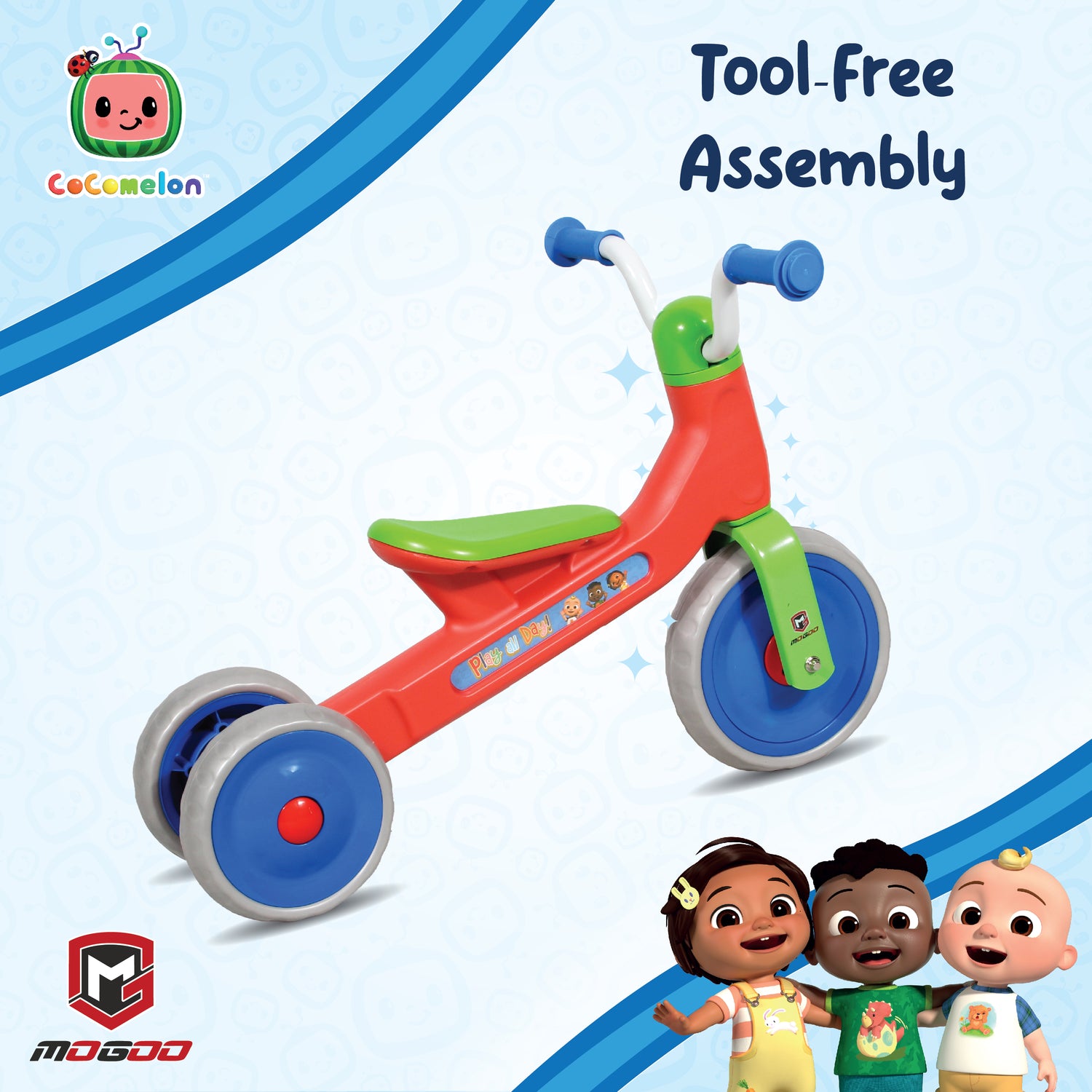 The Mogoo Cocomelon Trike is built for safety, comfort, and fun. With a strong steel frame, puncture-proof tires, and ergonomic grips, it’s perfect for little riders. Tool-free assembly makes setup quick and easy for parents.