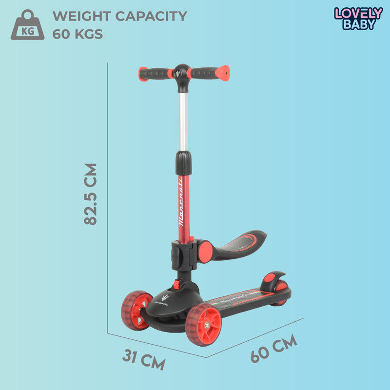 The Maserati 2-in-1 scooter offers versatile fun for young children. It can be used as a seated ride-on for younger toddlers and easily converts to a stand-up scooter as they grow. Featuring the stylish Maserati design, it provides a comfortable and exciting way for kids to explore.