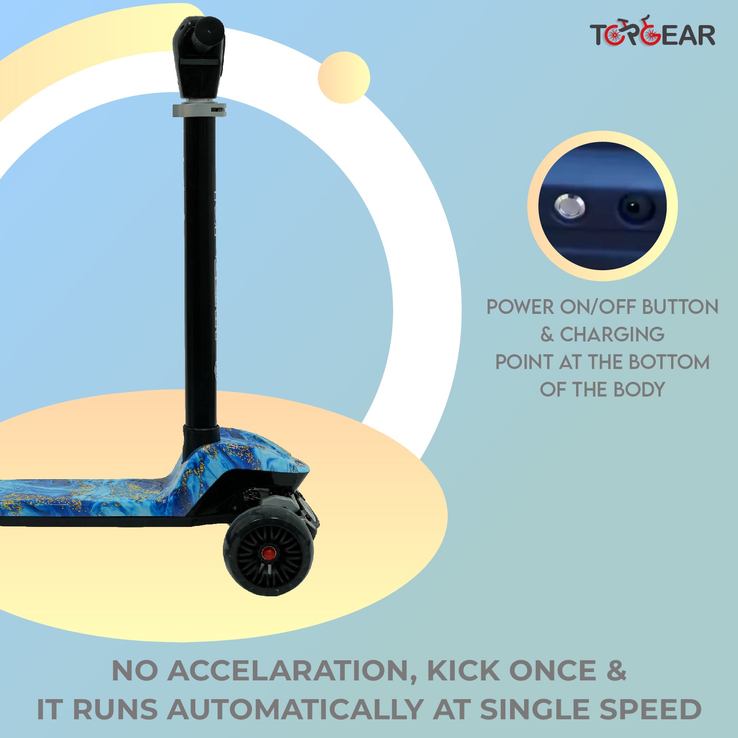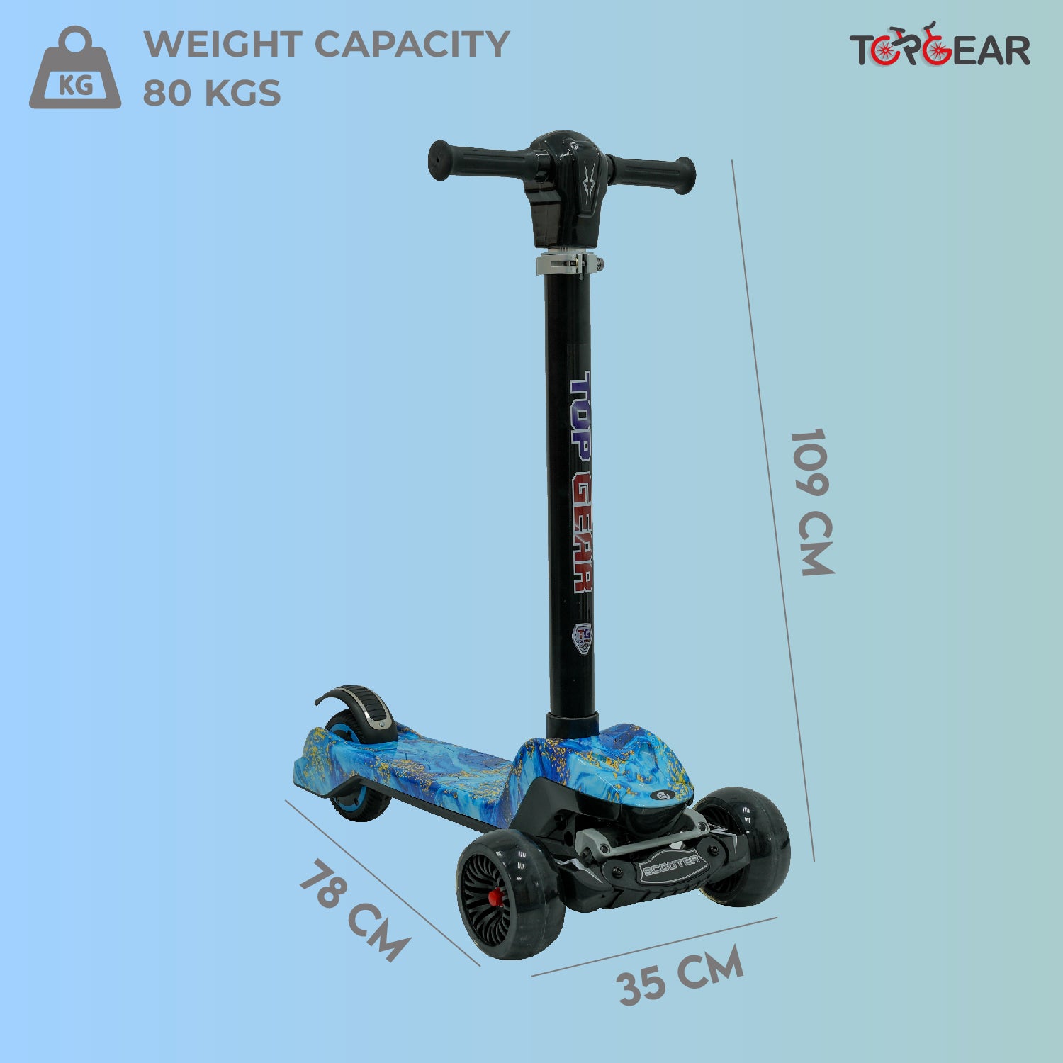 Get ready for fun with the Top Gear 3-Wheel Electric Scooter! Designed for ages 6-12 years, this scooter features a 24V brushless motor for a smooth ride up to 10 km/h with a range of 8-10 km. With light-up wheels, a foldable design, and adjustable height, it's built for convenience and excitement, supporting up to 80kg.
