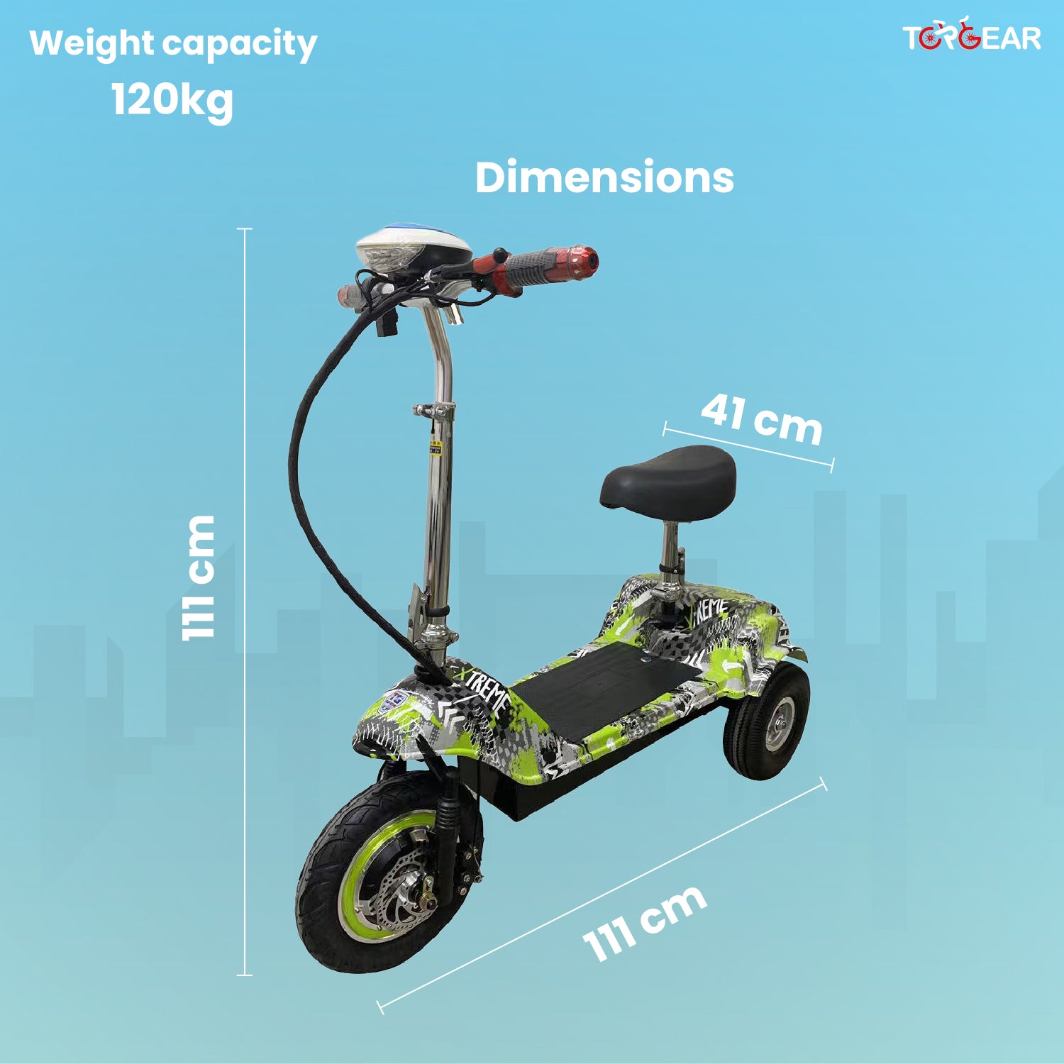 Experience a powerful and versatile ride with the Top Gear 50 Electric Scooter with Seat! It features an 800W brushless motor and a 36V battery for a top speed of 35 km/h and a range of up to 30 km. The foldable design with a seat makes it convenient for both standing and seated riding. Built with a durable frame and front suspension, it offers a comfortable ride, while mechanical brakes and LED lights ensure safety