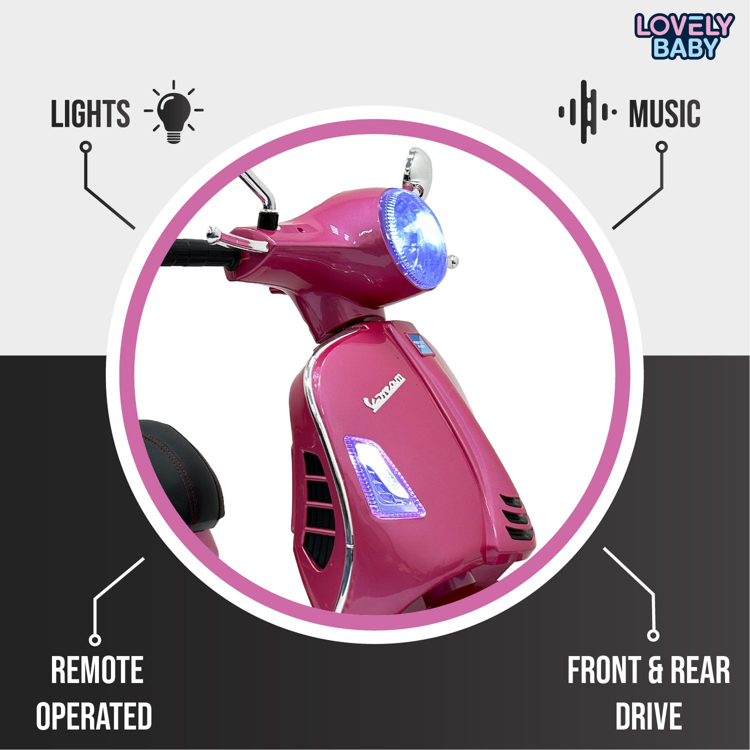 Recommended for ages 2-5 years, the Lovely Baby E-Dream Electric Ride-On Motorbike features a powerful 12V battery and dual motors. Parents can use the remote control for safety, while kids enjoy a realistic ride with training wheels, a foot accelerator, flashing LED lights, and music from a luxury synthetic leather seat.
