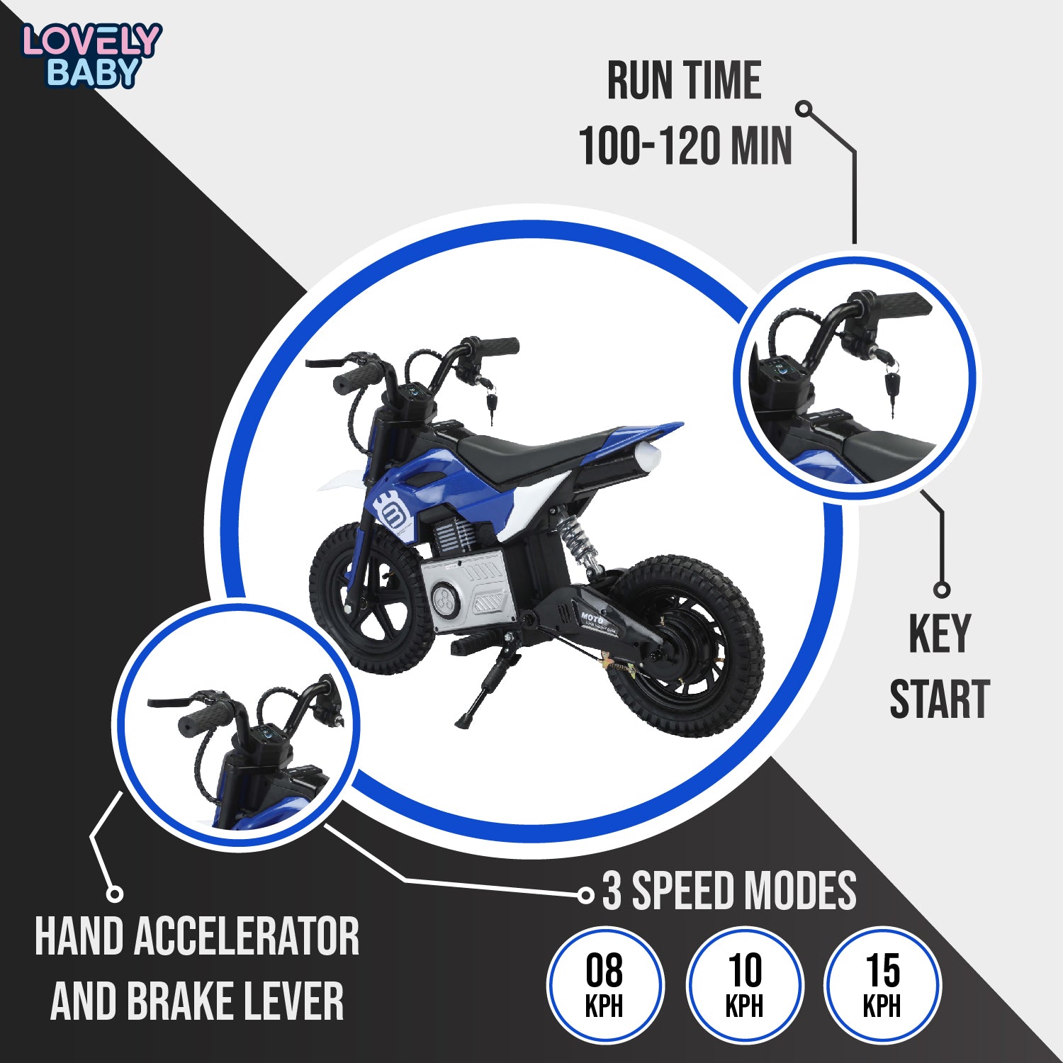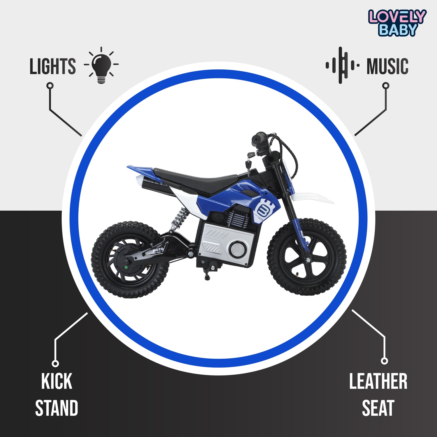 Lovely Baby Electric Ride-On Dirtbike - Blue is backordered and will ship as soon as it is back in stock.