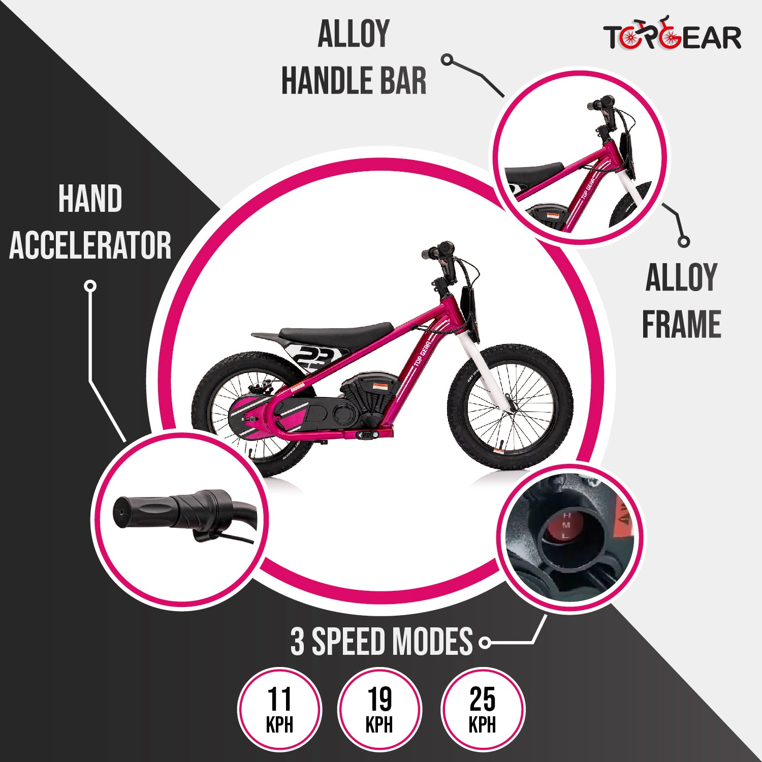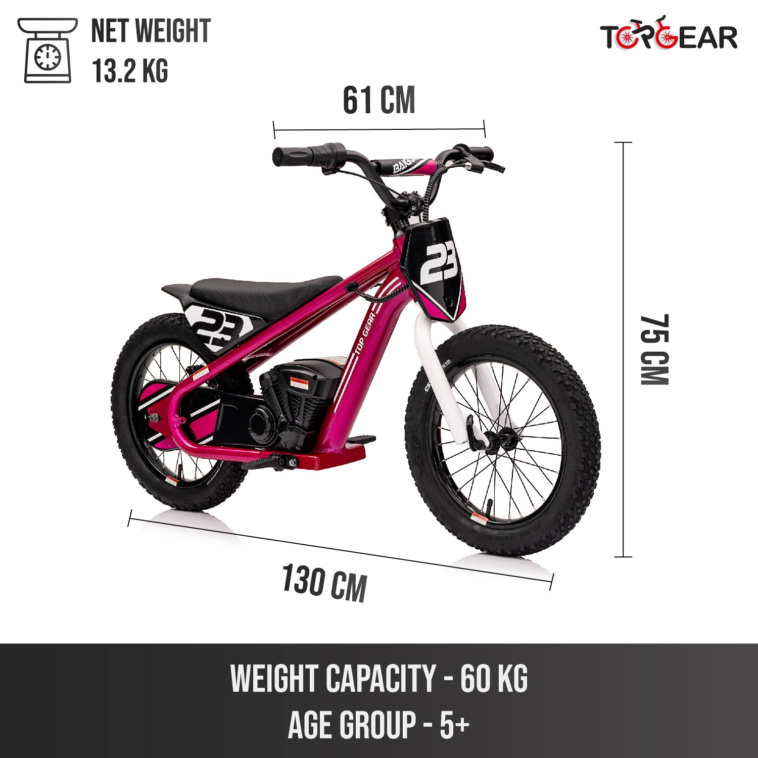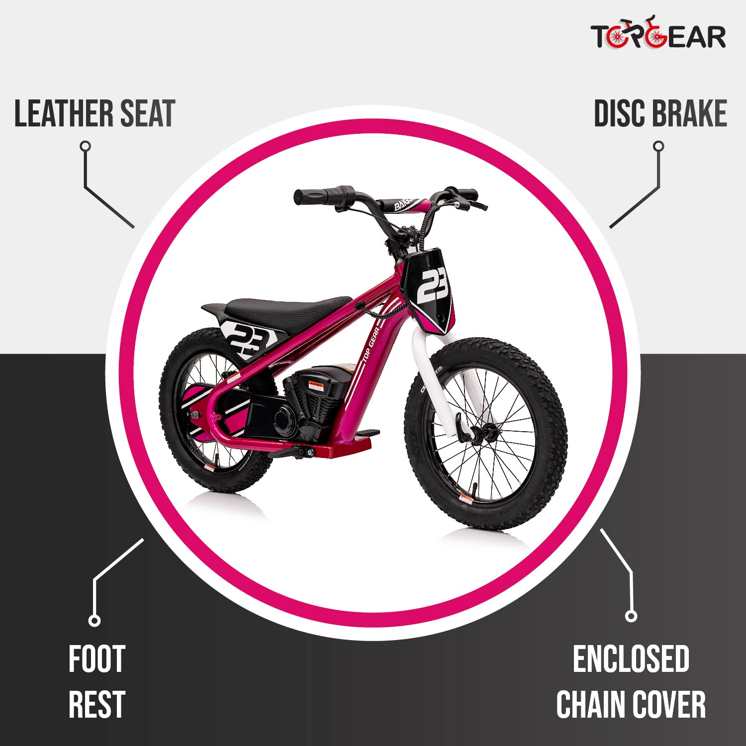 Unleash serious fun with the Top Gear Electric Ride-On Dirtbike! Powered by a 24V battery and 250W brushless motor, it offers three adjustable speeds (up to 25km/h). Its sturdy aluminum frame, air wheels, and synthetic leather seat ensure a smooth, comfortable ride. With disc and hand brakes for safety, it's built for thrilling, secure adventures.