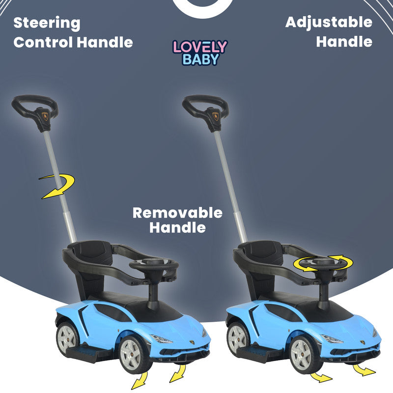 Get your toddler cruising in style with the Lamborghini-Style Push Car! This ride-on combines sleek design with essential safety features and interactive fun, perfect for little adventurers.