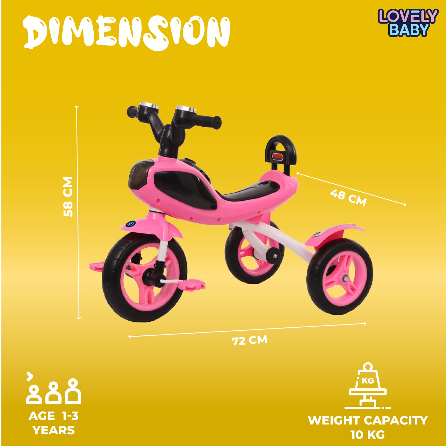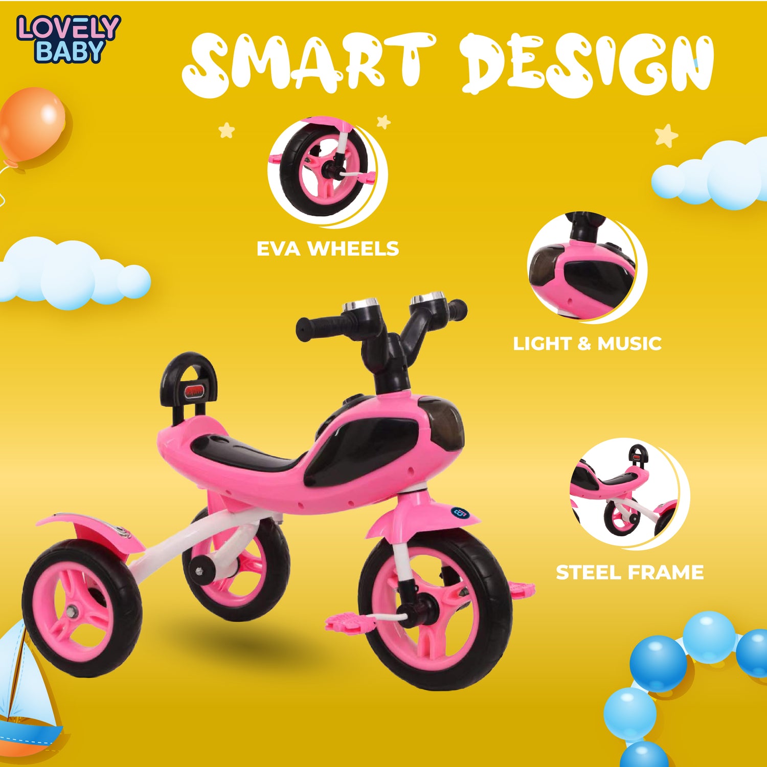 This Lovely Baby Kids Tricycle is designed to make playtime extra special. It features durable EVA wheels for a smooth and quiet ride, along with engaging LED lights and music to keep your little one entertained on every adventure.