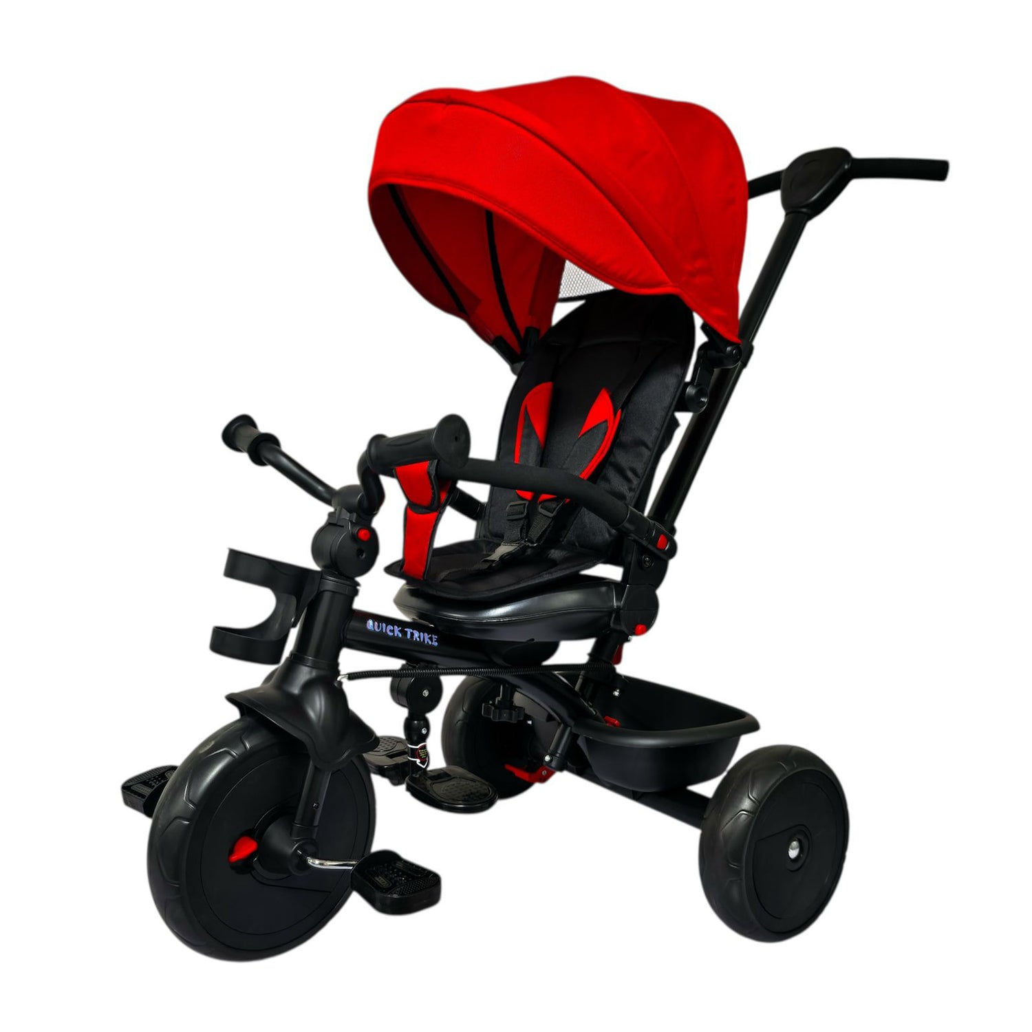 This Lovely Baby Tricycle is designed for toddlers aged 1-3 years. It offers parent steering with a push handle, sun protection with a canopy, and safety with rails and a seat belt. Features include EVA wheels, a steel frame, a footrest, rear basket, and bottle holder.