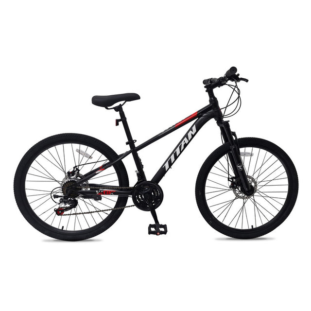 The Vaux Titan Mountain Bike is built for tough trails and everyday adventures. With a strong steel frame, front suspension fork with lockout, and reliable disc brakes, it offers comfort, control, and durability on any terrain.